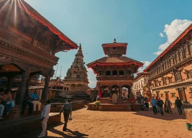 早餐后前往帕坦杜巴廣場(chǎng),廣場(chǎng)呈長(zhǎng)方形,東邊是皇宮,塔萊珠女神廟、金廟、曼嘉噴水池等,西 邊則是造型各異的廟宇,其中最為著名的是黑天神廟、黑天寺、哈里桑卡神廟、毗濕奴神廟、 毗斯瓦納特神廟等。其建筑藝術(shù)也非常高超、精湛,在世界建筑史上占有一席之地,被稱(chēng)為 "露天的博物館"。游覽始建于 2000 多年前的世界上最輝煌的佛教寺廟“斯旺那布廟”(Swayambhunath 世界文化遺產(chǎn),俗稱(chēng)“猴山”) 【約 1.5 小時(shí)】,來(lái)這里祭祀 的有尼佤爾尼姑、藏族喇嘛、佛教及印度教之貴族朝圣者,也許斯旺那布塔是觀察尼泊爾各個(gè)宗教融洽相 處的最佳地方。整體建筑古樸,味道十分濃郁,民房的窗飾極其繁復(fù),寺廟建筑的細(xì)部一樣精細(xì)。寺廟、 佛塔、銅飾等組合在一起,再加上成群的鴿子飛來(lái)飛去,成群的猴子蹦來(lái)蹦去,形成獨(dú)特的景觀。游覽始建于 13、14 世紀(jì)的巴德崗杜巴廣場(chǎng)(Bhaktapur Durbar Square 世界文化遺產(chǎn))【約 2 小時(shí)】:55 窗宮(The Palace of 55 windows)、 巴特薩拉女神廟(Batsala Devi)、尼亞塔波拉塔(Nyatapola Temple)等。這里可以選購(gòu)著名的巴德崗木雕工藝品和陶制品。十五世紀(jì)以后,巴德崗杜巴廣場(chǎng)是巴德崗的城市核心,這里有長(zhǎng)達(dá)500 年馬拉王朝的王宮,包括許多各具藝術(shù)特色的宮殿、庭院、寺廟、雕像等,被譽(yù)為“中世紀(jì)尼泊爾藝術(shù)的精華和寶庫(kù)”,素有“露天博物院”之稱(chēng),展現(xiàn)出一幅中世紀(jì)尼泊爾的瑰麗圖畫(huà)。后前往加都以東 30 公里的美麗的尼瓦爾人村莊納加闊特(海拔:2000 米)。這里以壯美的喜馬拉雅雪山日出、日落而聞名,是著名的喜馬拉雅觀景臺(tái)。因?yàn)檫@里是加德 滿都山谷觀賞喜瑪拉雅山脈視角最廣且最佳的地方。在這里觀賞喜瑪拉雅雪山全景,喜馬拉 雅雪山就像一條玉帶橫掛在空中。如果能見(jiàn)度高,還能看到世界第一高峰-珠穆朗瑪峰。這 里正對(duì)著喜瑪拉雅山脈的二十多座 6000 米以上、包括珠珠穆朗瑪峰、雅安納普爾納山峰、 岡底斯圣山等世界著名雪峰的連綿山丘。(在此可以看到十座世界最高山峰中的五座)。傍晚在納加闊特度假 村內(nèi)用晚餐,品餐觀景,是有多么的愜意舒適!