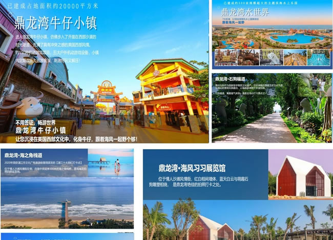 【鼎龍灣】通過 “文化傳承、生態(tài)環(huán)保、鄉(xiāng)村振興”三重價(jià)值體系,強(qiáng)化湛江濱海特色旅游,致力打造濱海旅游度假基地。項(xiàng)目以山、海、林、湖、濕地、田園、沙灘等自然景觀為基底,構(gòu)筑“一帶一軸三核心,兩翼五區(qū)多節(jié)點(diǎn)”的大布局。建設(shè)德薩斯水世界、濕地海洋公園、鼎龍灣野生動(dòng)物王國三大主題公園為核心集國際品牌酒店群、環(huán)球特色小鎮(zhèn)、濱海高爾夫、海田溫泉、非遺文化體驗(yàn)、漁港碼頭美食街等多維業(yè)態(tài)于一體的全球休閑、娛樂、度假目的地。