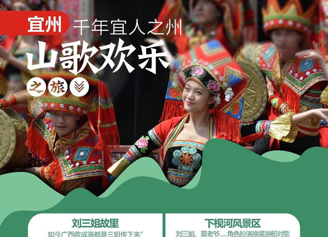 后游覽【劉三姐博物館】劉三姐的傳說(shuō)最早見(jiàn)于南宋王象之《輿地紀(jì)勝》卷九十八《三妹山》 。明清以來(lái),有關(guān)她的傳說(shuō)與歌謠文獻(xiàn)記載很多 ,壯族民間口耳相傳的故事與歌謠更為豐富。2006年,宜州市申報(bào)的“劉三姐歌謠”,入選第一批國(guó)家級(jí)非物質(zhì)文化遺產(chǎn)名錄。劉三姐又稱(chēng)“劉三妹” ,為中國(guó)壯族民間傳說(shuō)中的歌仙。