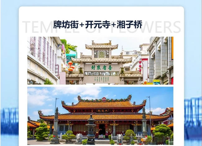 早餐后游覽【開元寺】(游覽時間不低于30分鐘)位于鯉城區(qū)西街,是中國東南沿海重要的文物古跡,也是福建省內(nèi)規(guī)模較大的佛教寺院。該寺始創(chuàng)于唐初垂拱二年(686年),初名蓮花道場,開元二十六年(738年)更名開元寺。現(xiàn)存主要廟宇系明、清兩代修建,南北長260米,東西寬300米,占地面積78000平方米?!疚鹘帧浚ㄓ斡[時間不低于30分鐘)是泉州較早開發(fā)的街道和區(qū)域,早在宋朝,它就已經(jīng)象征了泉州的繁榮,它還是泉州市區(qū)保存較完整的古街區(qū),保留著大量具有歷史原貌的建筑。前往前往【蟳埔村】(游覽時間不低于60分鐘),蟳埔村位于福建省泉州市豐澤區(qū)東海社區(qū)的一條小漁村,這里居住的是古時阿拉伯人的后裔。這里的女人們頭上戴著鮮花做的漂亮的簪花圍,戴著丁香耳墜,穿著大裾衫、寬腳褲,形成了一道獨特的風情,她們和惠安女、湄州女一起并稱福建三大漁女,這里還有別具特色的民居“蚵殼厝”。體驗潯埔村地方民俗,風土人情?!九抠浰筒寤?,體驗潯埔漁村民俗】隨后前往平潭酒店入住休息。