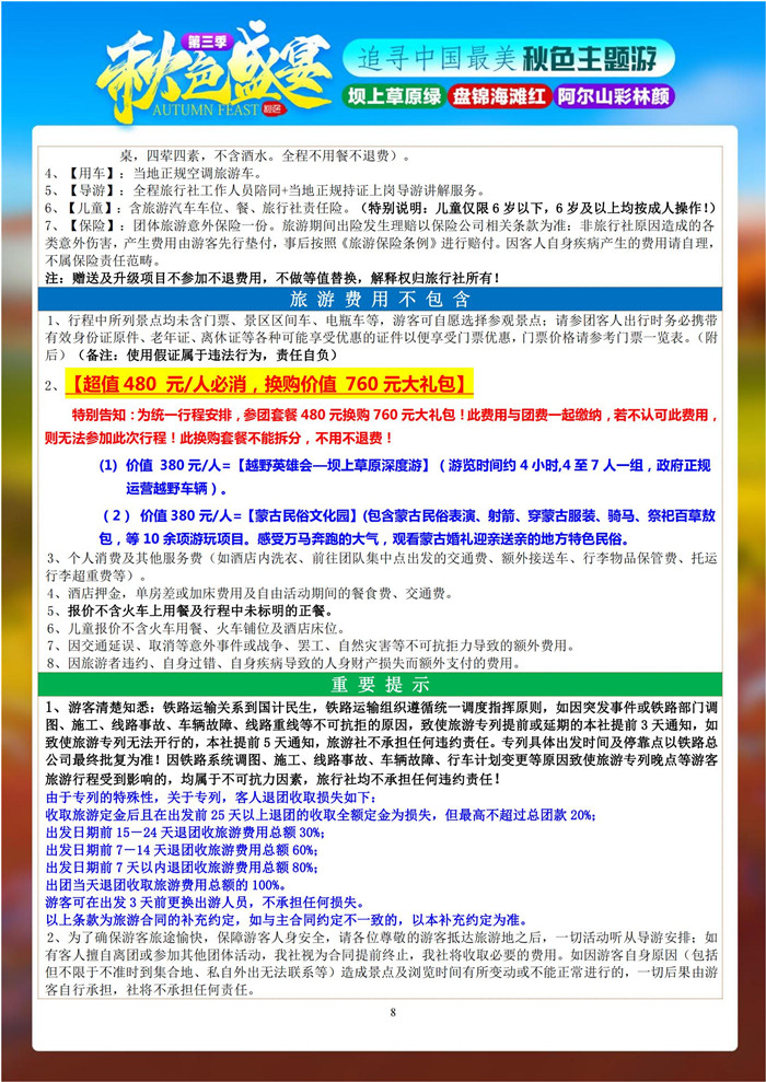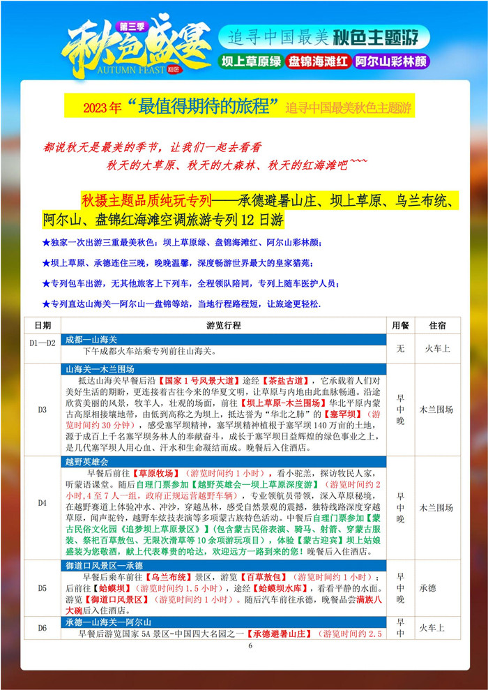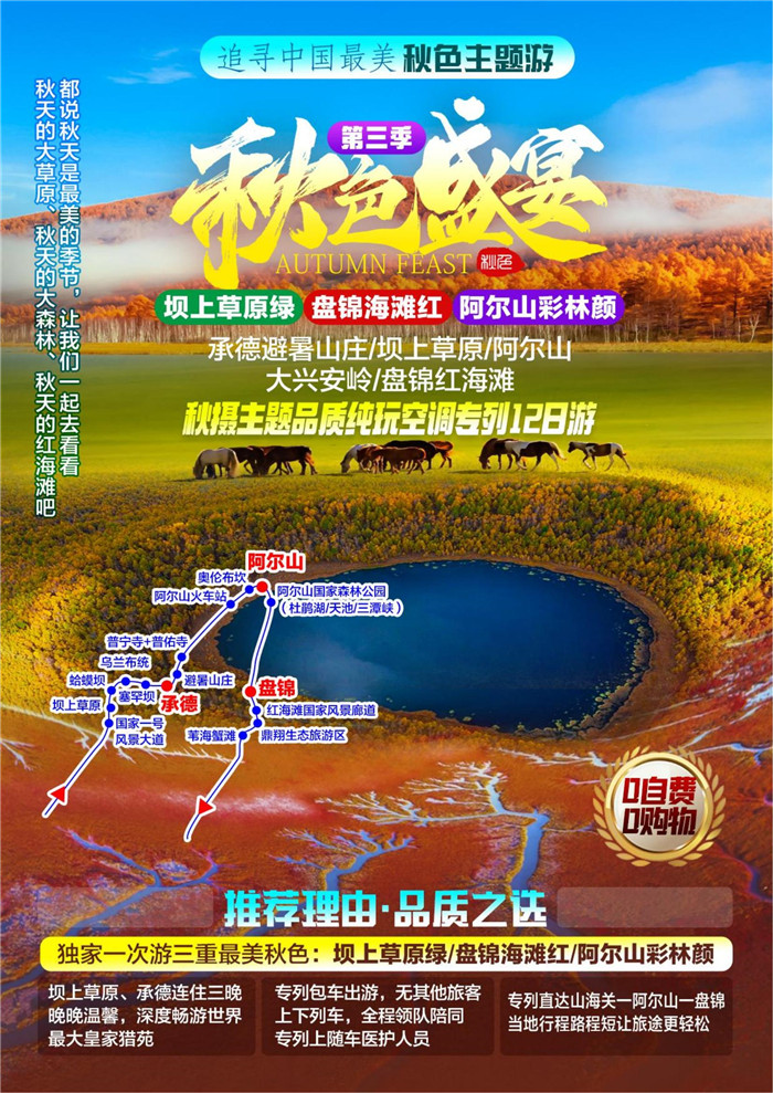 綿陽中旅行假日旅行舉行2023年秋攝三絕壩上阿爾山紅海灘空調(diào)旅游專列12日游推薦會