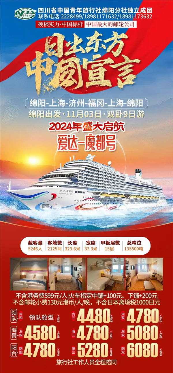 綿陽中旅假日旅行社于2024年10月9日在市工會大廈成功舉行“愛達·魔都號豪華郵輪9日游”旅游線路推薦會?,F(xiàn)場主持人向到場的嘉賓們詳細的介紹了濟州、福岡等地的風(fēng)土人民、美食、美景以及出游的相關(guān)注意事項等內(nèi)容,受到了嘉賓們的熱烈歡迎和關(guān)注。服務(wù)熱線:0816-2228499/2238477 。