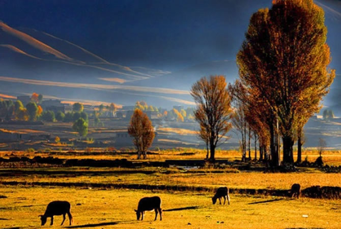早餐后賞萬畝【青楊林】,數(shù)以萬計的青楊林像衛(wèi)兵守護(hù)著清清傍河,守望著天堂里的香格里拉,春天,一片碧波蕩漾,春意盎然,秋天則燦若云霞,金黃灑滿大地,無需裝飾就是一幅完美的自然畫卷。然后觀【色拉草原風(fēng)光】,翻越【波瓦山】,欣賞迷人的【赤土】河谷、前往令人神往的【亞丁景區(qū)】。我們將轉(zhuǎn)乘景區(qū)的觀光車,(觀光車費用:120元/人費用自理)翻越【牛郎神山】(海拔4760米),抵達(dá)目的地亞丁景區(qū)【扎灌崩】,步行十分鐘左右,到【沖古寺】,(藏語意為填湖造寺,海拔3900米)欣賞由草地、森林、小溪和嘛呢堆組成的天然沖古草坪,朝觀神山【仙乃日】(意為觀世音菩薩,海拔6032米)。然后乘坐電瓶車(約6.5公里,往返80元,單程50元,費用自理)或者步行(步行3個小時),到達(dá)【洛絨牛場】,遠(yuǎn)觀【夏諾多吉】(意為金剛手菩薩,海拔5958米),【央邁勇】(意為文殊菩薩,海拔5958米),站在央邁勇神峰下,轉(zhuǎn)身向后瞧去,由群山環(huán)繞著的寬闊峽谷間,森林、草地、溪流和睦地各守一方,這氣勢莽莽的自然景觀,讓人流連忘返。然后可步行或者騎馬(約3小時,騎馬往返費用自理)到達(dá)【牛奶海】。因牛奶海和五色海海拔高,客人務(wù)必根據(jù)自身實際情況選擇自費騎馬前往游覽. (牛奶海在央邁勇的山坳里,呈扇貝形,中間是碧藍(lán)的雪水,四周雪山環(huán)繞,湖水清瑩碧藍(lán)以其玲瓏秀雅水色翠藍(lán)而著名)。繼續(xù)向前便到達(dá)美麗的【五色?!坑置浅绱?五色海由于光的折射下,產(chǎn)生五種不同顏色而得名:其真名為“單增措”,它位于仙乃日與央邁勇之間,海拔4600米,湖面呈圓形。面積0.7公頃,冰谷下伸至湖畔,雪山倒影湖面,呈現(xiàn)奇幻的色彩,是藏區(qū)著名的圣湖)。上山時可觀賞野生動物、高山花蕊、雪山森林、冰川、湖泊、河流,體驗人與自然和諧相處的天然妙趣,讓神山圣水與心共鳴,盡情沉醉在夢幻之地。下午6點返回景區(qū)門口。宿香格里拉鎮(zhèn)。