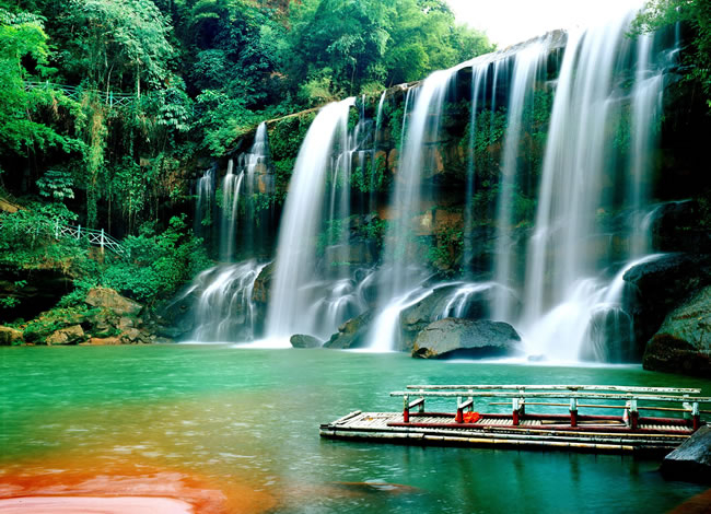 早餐后前往當(dāng)?shù)厣鐣唐妨闶燮髽I(yè)自由活動并領(lǐng)精美紀念品,名特產(chǎn)品(較為著名云上赤水泰和乳膠、逸可瑞斯乳膠等,主要銷售乳膠制品),自由活動后前往【赤水大瀑布】欣賞美譽中國的簾狀瀑布典型代表中洞瀑布。觀氣勢恢弘的赤水大瀑布(寬81米,高76米),是亞洲最大的瀑布,也是“世界丹霞第一瀑”,瀑水從懸崖絕壁傾瀉而下,猶如萬馬奔騰,聲如雷鳴,水霧彌漫,陽光下時見彩虹繽紛,在特定的觀景石上,奇妙的佛光環(huán)隨人移動,一人一環(huán),美不勝收。自由活動后乘車前往【白馬溪景區(qū)】(此景點為旅行社贈送景點,若時間緊湊無法前往請各位旅客諒解,贈送景點不予置換或退費),(白馬溪景區(qū)內(nèi)有玻璃橋、旱滑道等娛樂項目,客人可根據(jù)自身情況自愿選擇自己喜歡的項目參加,報價不含娛樂項目)赤水白馬溪景區(qū)是赤水唯一家主題景區(qū),景區(qū)集有赤水旅游的5大旅游元素;瀑布景觀、丹霞景觀、竹林景觀、石斛觀光、以及活化石桫欏樹。景區(qū)原生植被繁茂,景色怡人,環(huán)境絕佳。是旅游觀光的絕佳勝地,晚餐可自費品嘗(苗家風(fēng)情晚會120元/人),同時觀賞苗家印象激情互動篝火晚會,或自由活動。酒店休息。