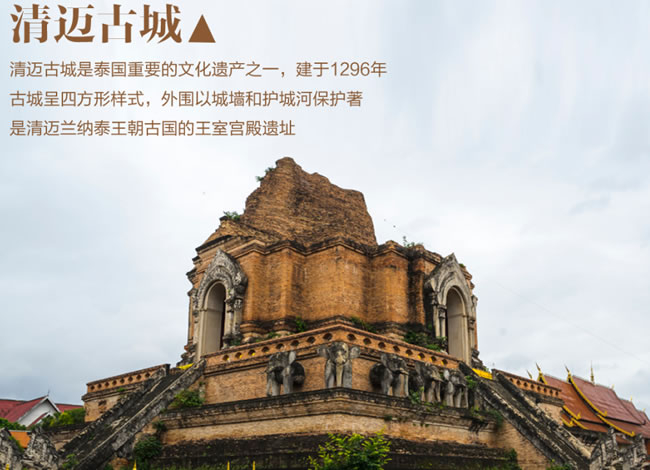 早餐后打卡金木棉島(約90分鐘):街道干凈、綠樹成蔭,氣候宜人,物美價廉、一片繁榮景象……這里不是虛幻的世外桃源,他的名字叫——老撾博膠。參觀【故事村】及【禁毒文創(chuàng)館】(約60分鐘),這里是全球首創(chuàng)以“禁毒”為主題,以預(yù)防毒品、抵制毒品及拒絕毒品三個面向,用故事性、劇場式的設(shè)計理念,以科技互動策展手法,以精彩紛呈的多感官體驗(yàn),寓教于樂,為大眾帶來更加豐富多彩的禁毒文化。結(jié)束后前往碼頭或口岸出境老撾,辦理泰國入境手續(xù),參觀【金三角牌坊】與【金三角大佛】(約30分鐘),然后乘汽車前往清邁(車程約4小時),下午抵達(dá)清邁,清邁是鄧麗君生前最愛的地方,這座小城安靜,淡雅,空氣干凈清新,呼吸就像在親吻戀人的臉頰。游覽【清邁古城、游覽泰囧廟、水果街】(合計約90分鐘):清邁古城建于 1296 年,是由褐紅色磚塊砌起的城墻圍起一個兩米左右高的正方形??上Т蟛糠纸ㄖ荚跉q月的更迭中消失了。現(xiàn)在留下最完整的一座城門是東邊城墻的塔佩門。正對塔佩門的路,就被稱作塔佩路(Thapae Road)。接著游覽【泰囧廟】《泰囧》中拍攝的寺廟,與清邁的其他一般寺廟不同。規(guī)模不大,五臟俱全,主廟宇呈亭臺樓閣樣式,金碧輝煌, 寧靜圣潔。清邁這里沒有消磨時間的溫柔海灘,沒有瘋狂血拼的豪華商場,有的只是近乎凝固的時間和讓人心情無比舒爽的安靜。你可以毫無目的地在古城中放空漫步,也可以穿越叢林跋山涉水,更可以在周末夜市瘋狂血拼,喧鬧和安詳都自然地結(jié)合在這個城市。來清邁,體驗(yàn)曾經(jīng)蘭納王國的獨(dú)特文化歷史,細(xì)嗅這朵清雅的泰北玫瑰。之后前往【清邁夜市】(約60分鐘)清邁夜市是清邁所有旅游商店的發(fā)源地。每天從日落到晚上11點(diǎn),這里都熙來攘往,好不熱鬧。有很多山地部落藝術(shù)家在這里開設(shè)攤位,他們穿著自己的特色服飾,很好辨認(rèn)。道路兩旁的人行道上都是擺滿各種各樣民族特色物品的小攤,也有美食一條街,各種各樣當(dāng)?shù)氐奶厣〕浴?/p>