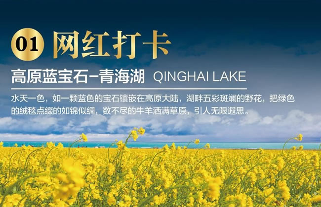 早餐后乘車前往【茶卡鹽湖】(含門票,不含小火車,游覽不低于3小時)茶卡鹽湖,中國的天空之鏡。風(fēng)光旖旎,景色優(yōu)美。當(dāng)你踏入茶卡鹽湖的那一刻,就仿佛進入了一個夢幻般的世界。只見湖面平靜如鏡,將天空、云朵、山巒、樹木倒映其中,形成了一幅獨特的水天相接的畫面。這里的鹽層晶瑩剔透,泛著白光,宛如一面巨大的鏡子,將周圍的一切都映照得清晰可見。漫步湖面如行走在云端之上。茶卡鹽湖是古絲綢之路的重要站點,歷史上是商賈、游客進疆入藏的必經(jīng)之地。湖面上,時而碧波蕩漾,時而有莽莽蒼蒼,集秀麗、壯美于一體,在那里時仿佛靜止般,天地間是一片純凈的白與藍,就像做了一場幻境的夢…這里被國家旅游地理雜志評為“人一生必去的55個地方之一”。贈送參觀青海高原藏寨(免費景點,游覽時間不低于1小時)村寨內(nèi)外到處都是飄揚的經(jīng)幡,領(lǐng)略藏族的風(fēng)土人情,體會藏族文化的魅力。此為贈送項目,若因客觀原因(例如關(guān)閉修整、時間、天氣、道路擁堵等因素)造成無法參觀的,則不退任何費用。參觀中國最美的五大湖泊之首高原明珠—【青海湖二郎劍】(含門票,不含電瓶車,不含游船,游覽不低于2小時)青海湖是我國第一大內(nèi)陸湖泊,也是我國最大的咸水湖。湖面純凈深湛、溫柔恬雅的湖水,滿載著古老而優(yōu)美的傳說,夾帶著文成公主的相思,是如此的波瀾壯闊、恢宏磅礴,漫步清海湖畔,擁一抹晨曦在心,握一縷格?;ǖ拿髌G于手,不思前塵,不念過往,心中,只存世事通透的安然......在這里你可以欣賞的水天均呈現(xiàn)青藍一色,藍天白云映襯在湖中,水波蕩漾,海風(fēng)拂面,站在湖邊拍照,以天、湖、海岸為背影,沉醉高原的藍寶石,感受歲月如水時光靜好。從廣場走到湖邊處,青海湖就在眼前,沿湖邊木制棧道觀湖散步,有幸可看到湖面上的海鷗在天空翱翔。青海湖的美用再多的語言都是無法形容的,左邊蔚藍的湖水,遠處茫茫草原,牛羊成群,徜徉其中,視野開闊,景色優(yōu)美,給您一種心靈的釋放與洗滌。晚住青海湖沿線或西寧。